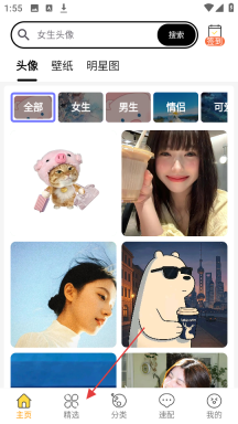 3、搜索特定头像:在搜索框中输入“动漫女生”“星空风景”等关键词,系统就能迅速筛选出相关头像,帮助用户便捷查找特定类型的素材。