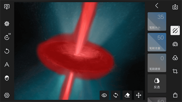 利用笔刷功能,可以手动绘制调整区域,所有的调整只会影响到这些区域。当选中笔刷工具之后,可以使用手指绘制一个区域,在绘制过程中,会有一个红色的区域出现,这些区域就表示被选中的区域。