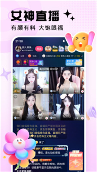 【花样直播】这里有软萌可爱的妹妹、还在上学的校花、二次元风格的萝莉,以及充满力量的肌肉型男。主播们风格百变,时而撒娇卖萌,时而献唱热舞,让人赏心悦目。还有热情火辣的舞女郎陪你一起嗨,现在就可以马上互动起来。