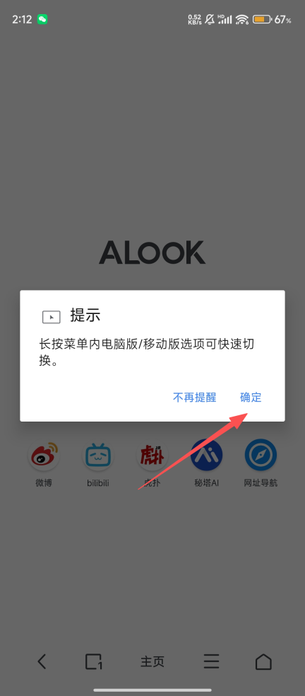 4、弹出提示框后,点击【确定】按钮,就能顺利切换至电脑版浏览模式了。
