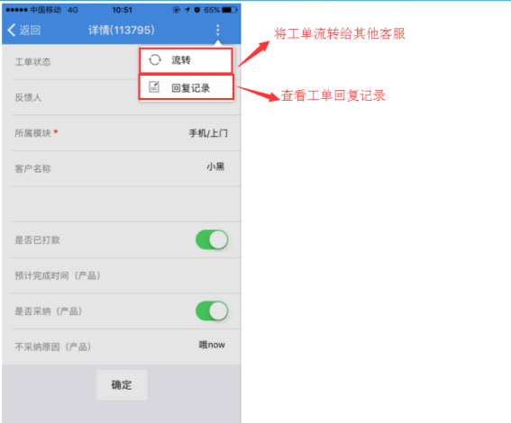 点击回复记录,可看每次工单操作的记录与回复内容,包括每条回复记录的附件,都可清晰的查看到。