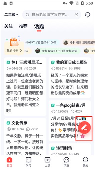 1、打开高途App,在首页选择话题板块,你可以参与大家的话题或者自己发布