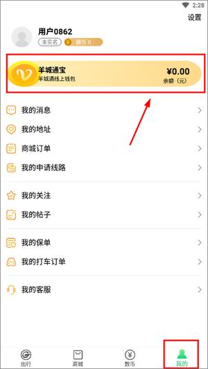 1、完成软件安装后打开,点击界面右下角的“我的”选项,通过手机号登录账号,随后点击“羊城通宝”功能入口;
