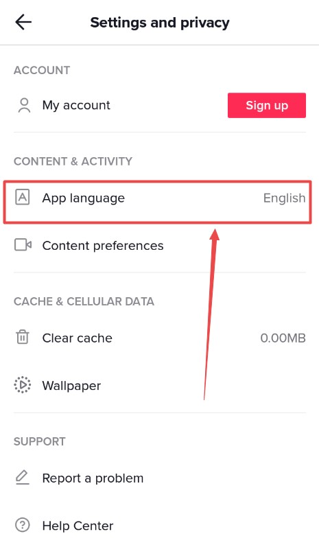 1、第一步是打开抖音国际版应用,接着切换至带有小人头图标的标签页,该页面默认显示的文字均为英文。