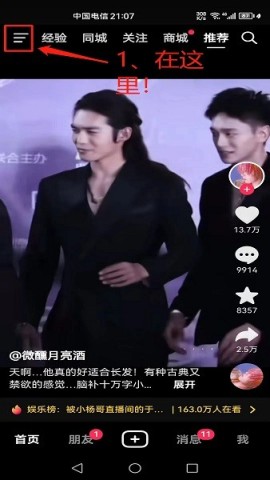打开抖音,轻松点击左上角的三条杠,开启无限可能;