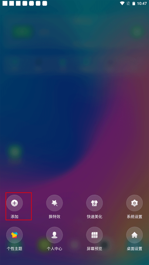 1、长按桌面空白处,这时下方弹出了几个功能选项,点击“添加”。