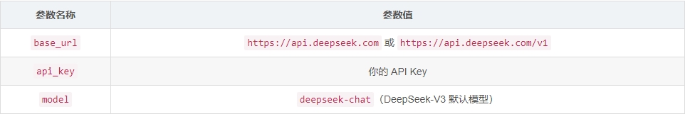 DeepSeek API 使用与 OpenAl 兼容的参数格式,以下为主要配置: