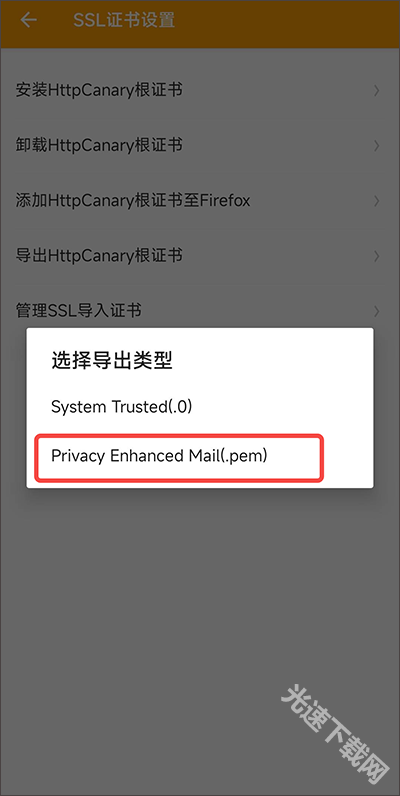 4、 导出类型选择下面这个【这里是未root环境,选择。pem。如果root之后需要更高要求可选.0】