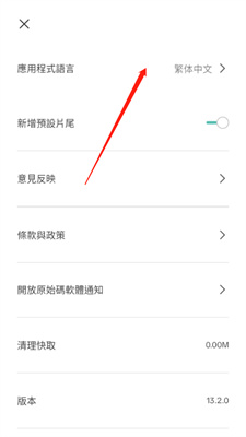2、进入设置页面以后,在顶部找到应用程式语言,点击进入。