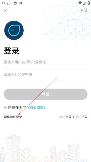 3、在登录页,点击【短信验证登录】,切换到短信登录的信息填写页。