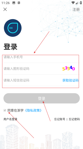 4、在填写页【输入手机号、验证码并勾选协议】后点击【登录】,即可完成账号登录操作。