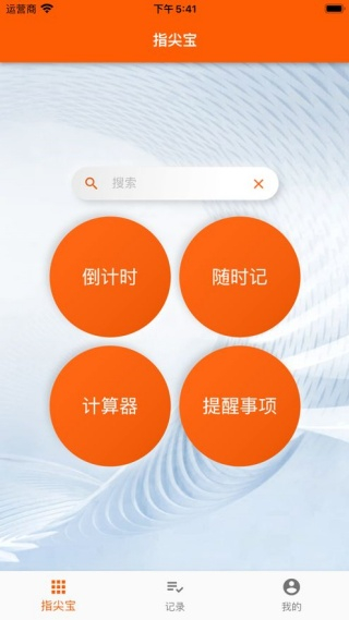 1、安装,打开软件,首页可以看到倒计时、随时记、计算器和提醒事项工具;