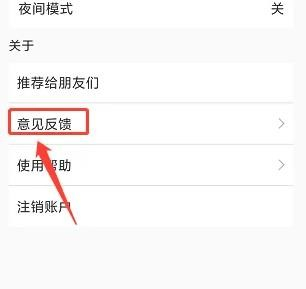 3.进入设置窗口,点击【意见反馈】选项