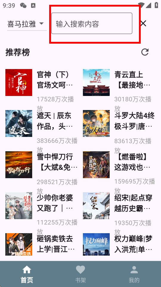 2进入软件后,可自由切换不同内容来源,像番茄畅听、喜马拉雅等平台都能按需选择,以此获取更丰富的资源内容。