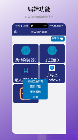 这是一款非常适合给长辈使用的应用。长辈们常常因为手机字体小、图标繁杂,找不到联系人或者误触按键。安装这款应用后,联系人头像会变大,电话和短信功能可以一键直达,还有语音输入和朗读功能,不会打字的老人只要说句话就能转化成短信,用起来特别方便实用。