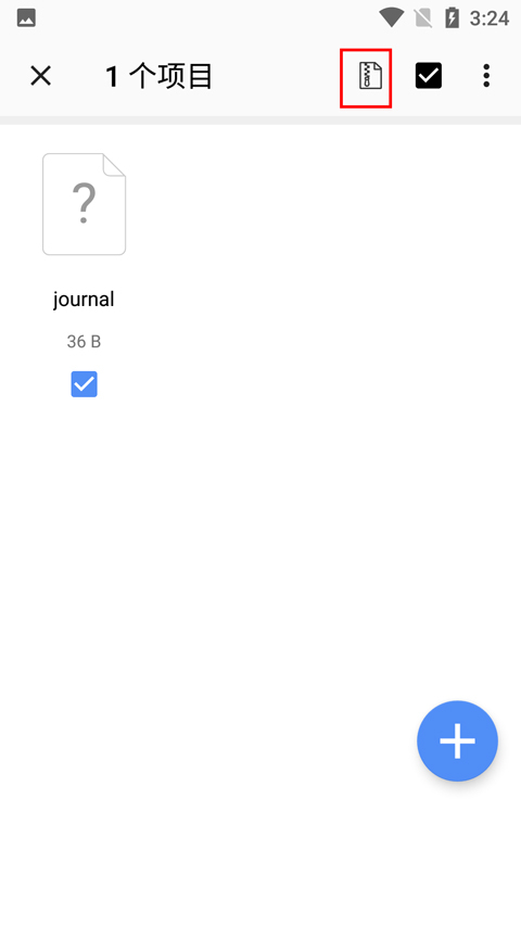 3、勾选好需要压缩的文件后,点击右上角的压缩图标;