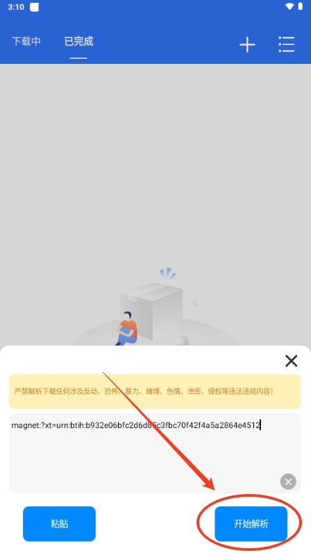 3、接着自定义输入正确的磁力链接,然后点击“开始解析”按钮。