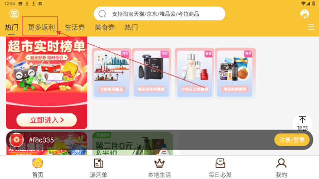 1、点【更多返利】,查看返利商品列表,选心仪商品,可享购物返利。