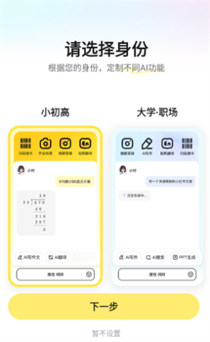 2、接下来设置好年级和身份,让软件更好地为你服务。