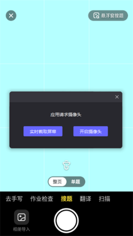 4、进入拍照搜题功能,只需启动摄像头,即可扫描、答题,学习变得如此简单。