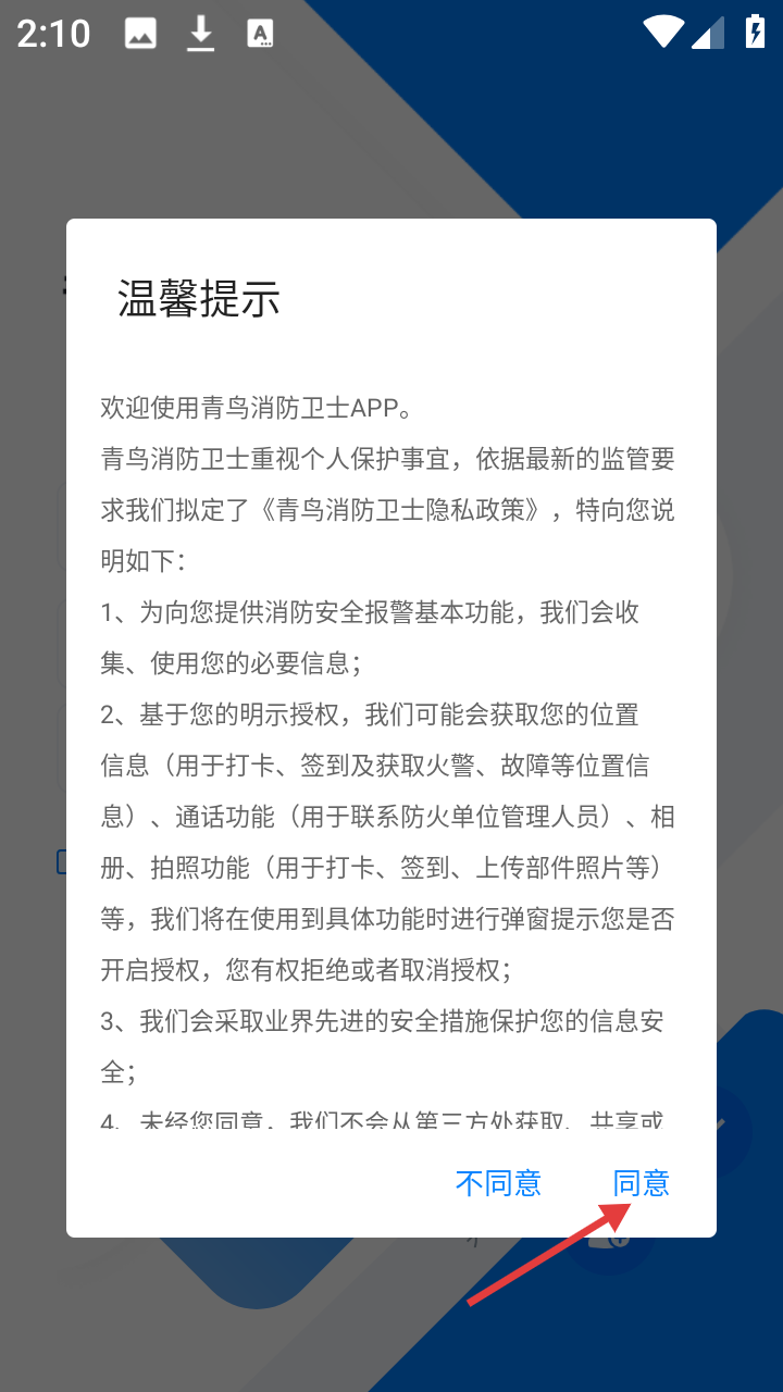 1、在弹窗中点击【同意】,完成隐私政策确认。