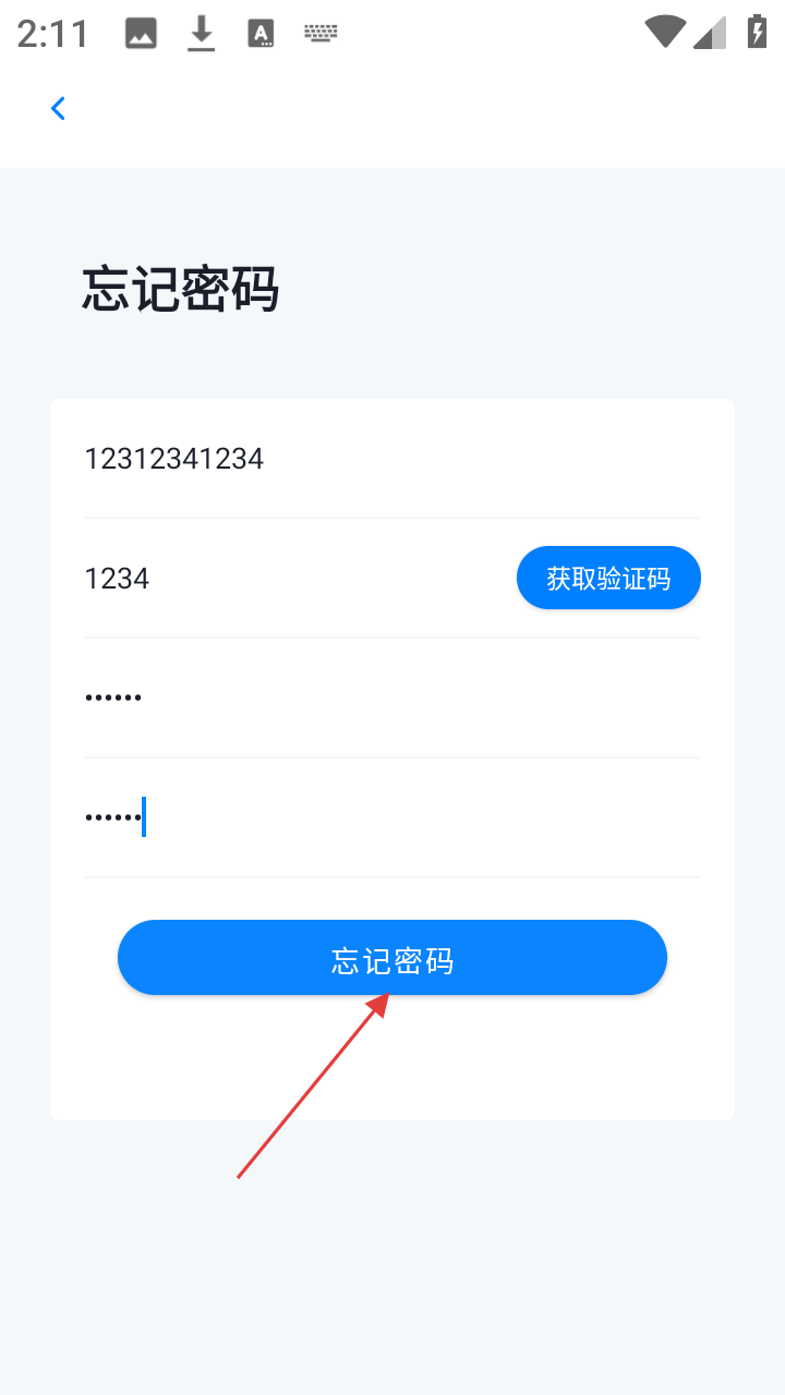4、填写完成后,点击【忘记密码】,即可完成密码重置。