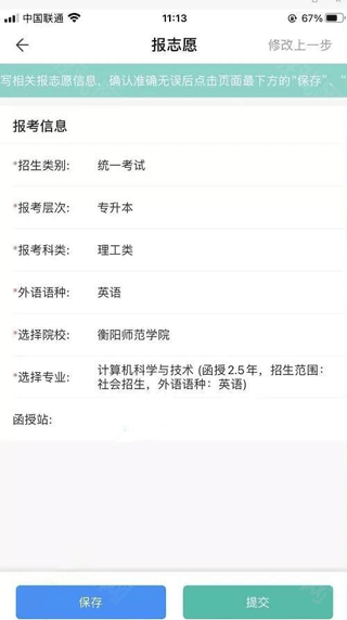 -“填报志愿”页面,“保存”按钮只保存页面信息,“提交”按钮保存页面信息,同时进入下一个环节;