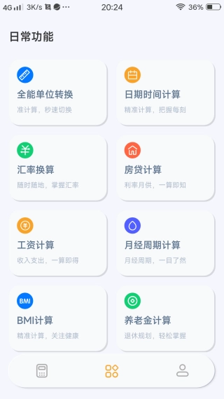 3、整合了多种日常实用的小工具,能满足生活里各类场景的计算需求,让用户享受到一站式的便捷服务。