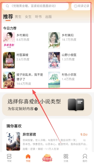 2、进入主界面后,可以根据推荐或分类查找各类小说,便捷的界面让您轻松找到想看的作品。