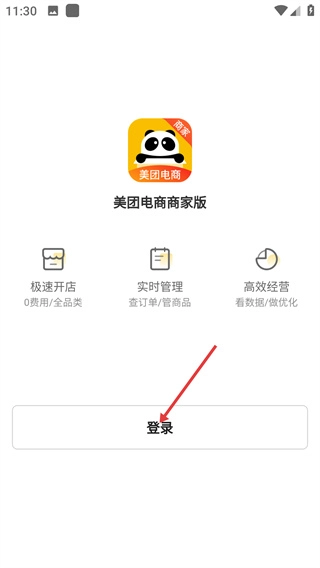 1、在美团电商商家版首页,点击【登录】按钮,进入登录操作页面。