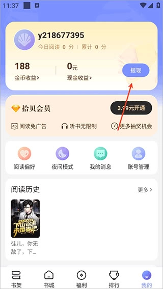 当金币积累到一定数量时,您可以进入【我的】页面执行提现操作。