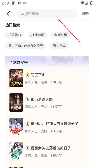 2、输入想要看的小说名称,点击【搜索】。