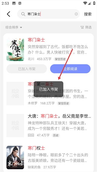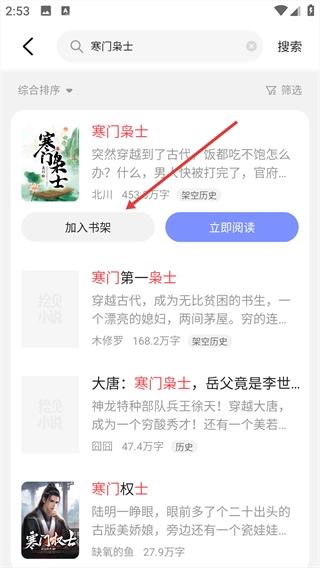 3、在搜索结果里找到你要找的书籍,然后点击【加入书架】这个按钮。