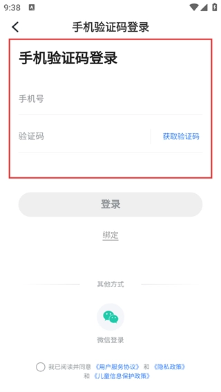 4、在登录界面,可选择【手机验证码登录】方式,输入手机号并获取验证码后,即可完成登录流程。