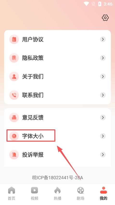 2、在页面点击字体大小