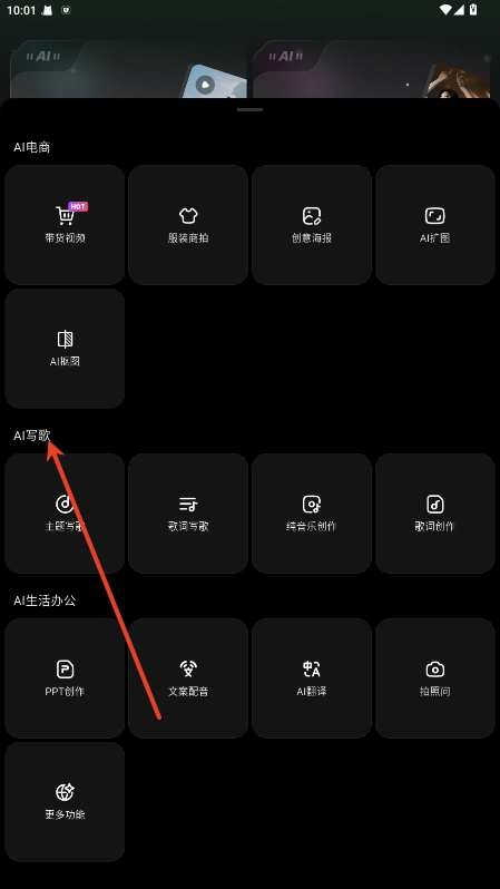 3、像AI写歌、文案创作这类功能,操作方式也类似,只需进入对应的板块,根据提示输入所需的信息或提出具体需求,之后静待AI完成相关操作即可。