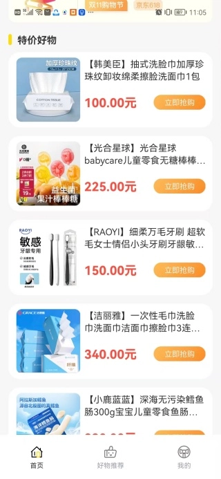 2、下滑首页就可以知晓各种特价好物,用户可以随时立即抢购;