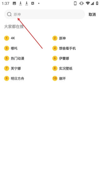 2、在搜索栏输入【明日方舟】,可查找原神相关壁纸。