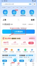 1、打开出行票务应用,点击火车票查询按钮,进入车次查询页面。