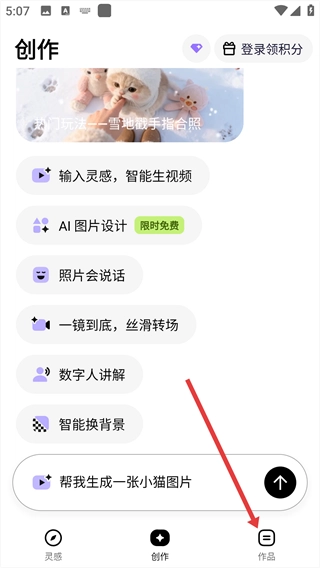 1、进入智能成片界面,输入想法,一键生成爆款视频,