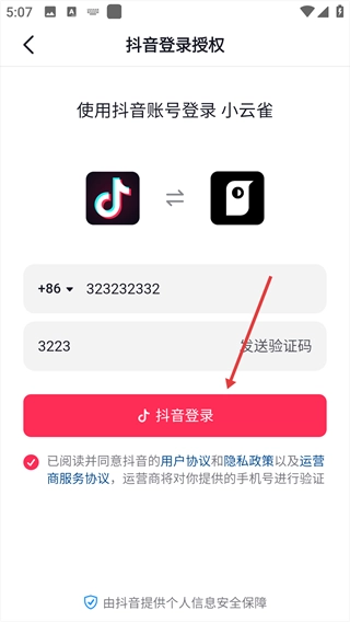 4、输入信息后,点击【抖音登录】,即可完成登录操作。