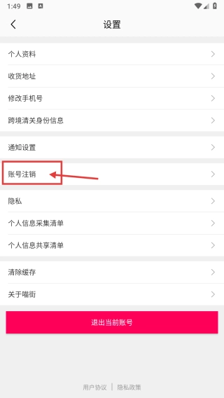 3、在设置界面,点击账号注销选项,进入注销说明页面。