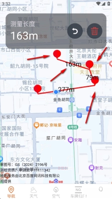 再选择一个点,可以测两点之间距离,还可以继续多选几个点进行测量
