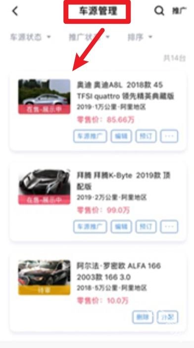 2、在车源管理板块内,用户可以查看所有在线车源。