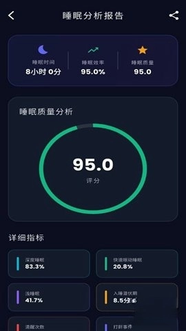 可以查看详细的睡眠分析报告,了解自己的睡眠质量,查看相关的睡眠指标。