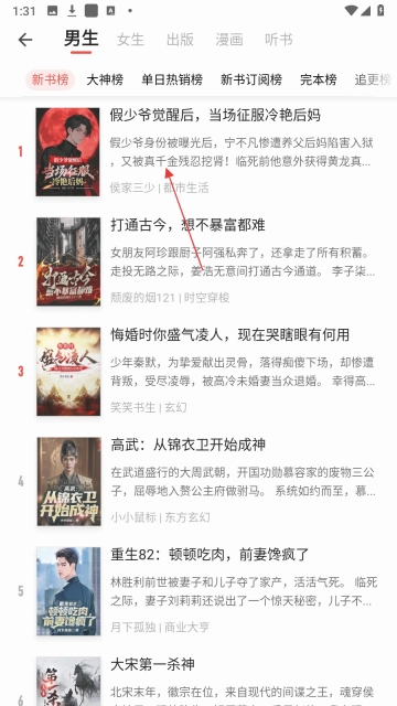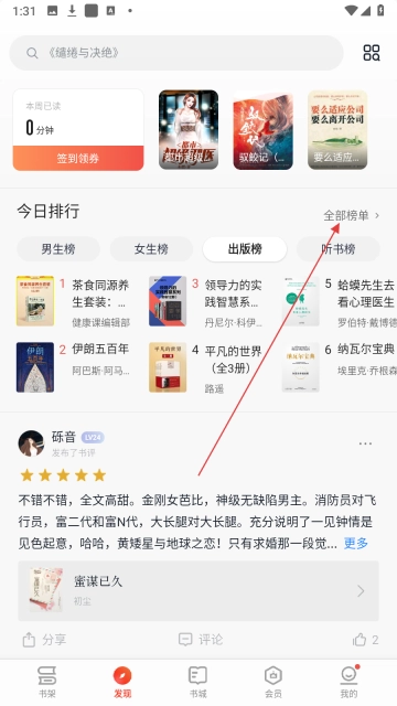 2、在榜单页面,点击感兴趣的书籍,进入书籍详情页面。