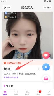 1、打开软件,在推荐页可查看用户实名认证信息及基本资料。