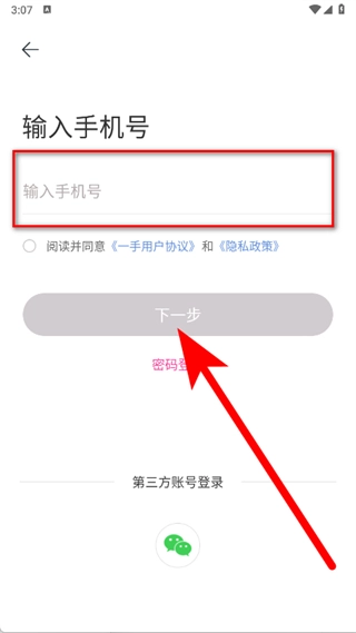 3、输入手机号,勾选阅读并同意后,点击下一步。