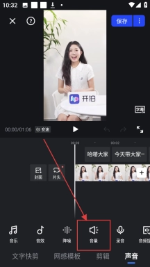 1、在视频编辑页面,点击【声音】,可进入声音设置页面,准备调整视频声音啦。