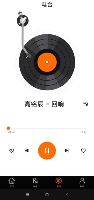 3、电台板块,用户可以直接收听在线电台的歌曲